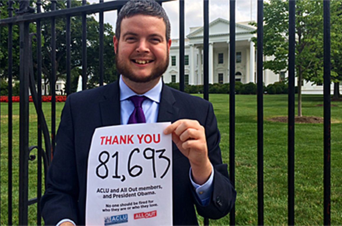 The ACLU and our hundreds of thousands of members and activists across the country helped to make this day possible. Together with our partners at All Out, 81,693 people signed a petition urging to President Obama to sign this executive order without an exemption for religiously affiliated contractors.