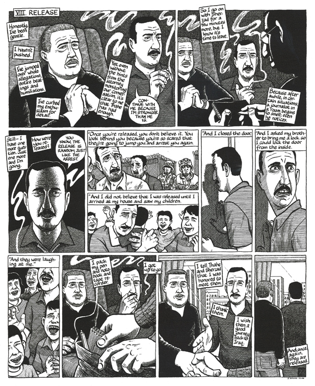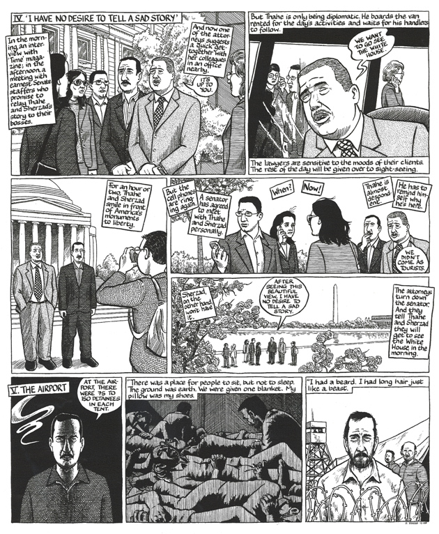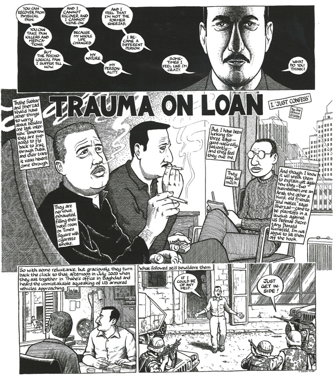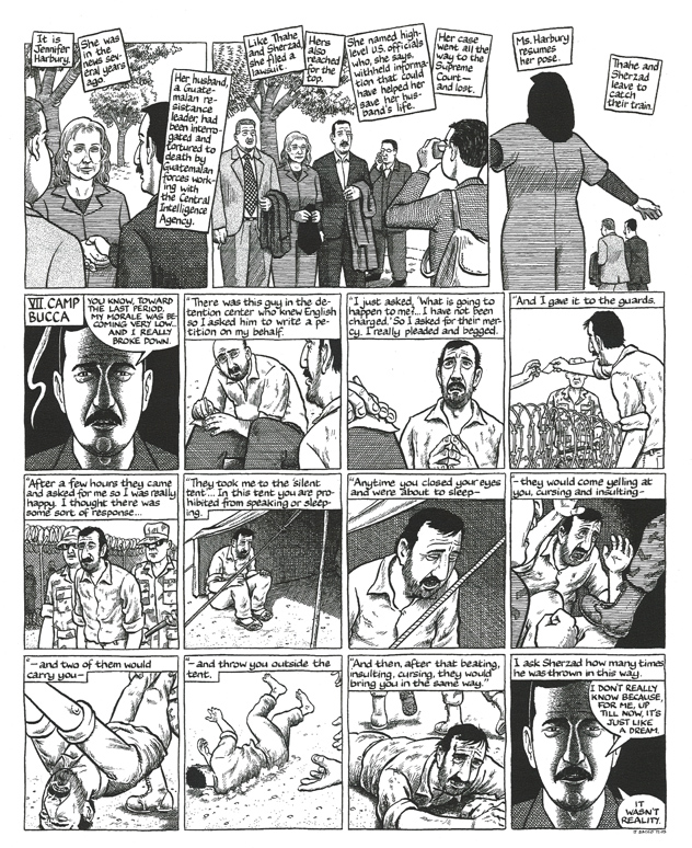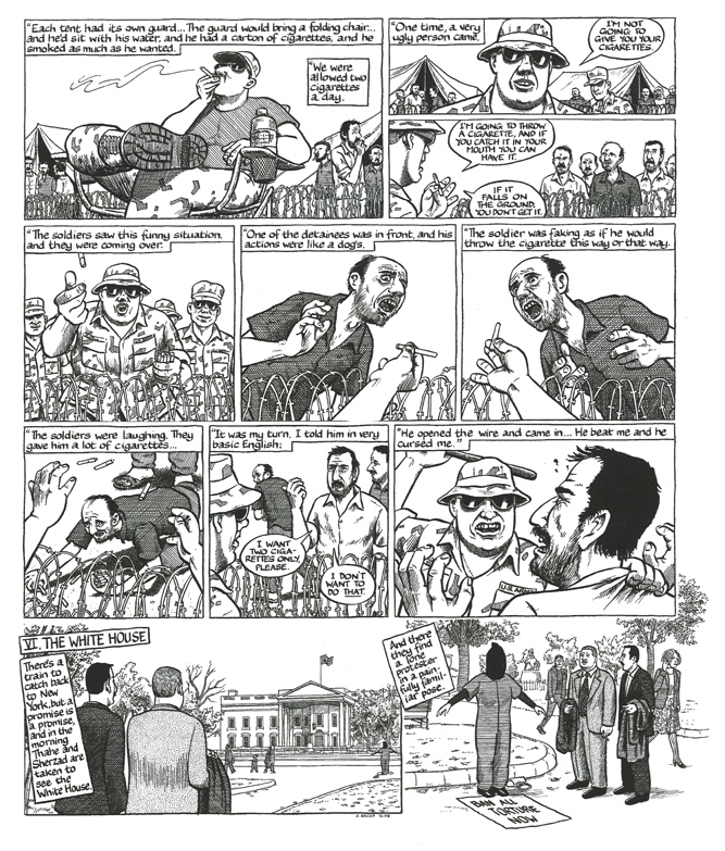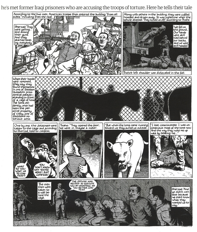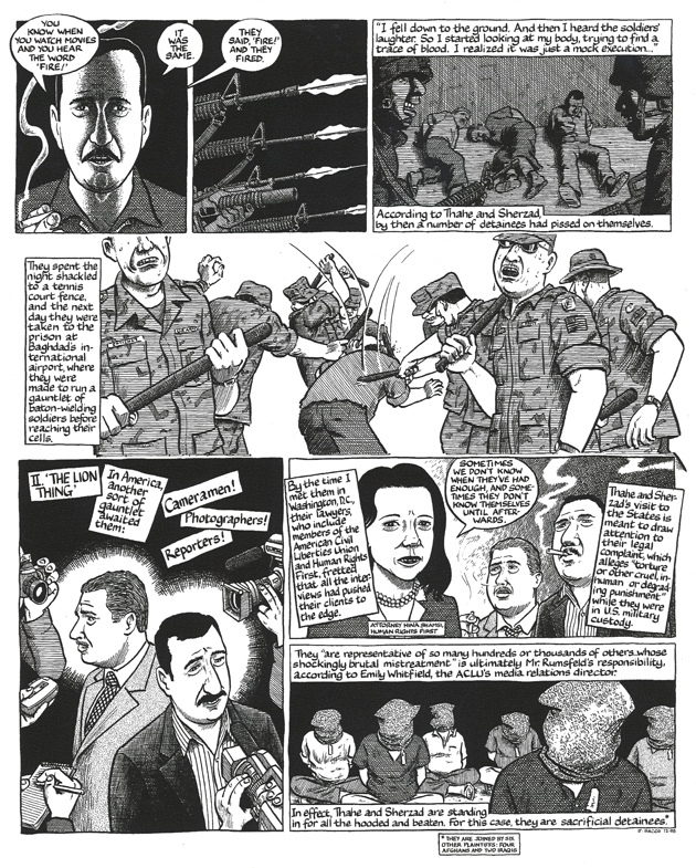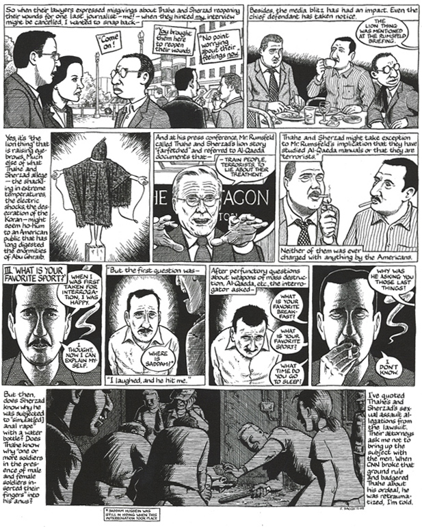 The famed comic artist Joe Sacco has reported from Iraq on the U.S. military in action. Now he's met former Iraqi prisoners who are accusing the troops of torture. Here is their tale: