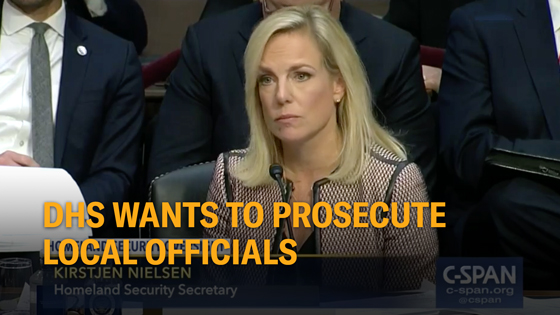 In testimony before Congress yesterday, Secretary of Homeland Security Kirstjen Nielsen confirmed that her agency is seeking the prosecution of state and local officials in jurisdictions that limit their entanglement with federal immigration enforcement.