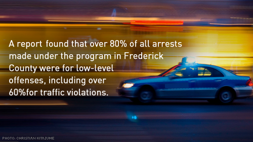 A few months ago, the ACLU called on Immigration and Customs Enforcement to end its 287(g) program, which delegates immigration enforcement authority to participating law enforcement agencies across the country. Civil rights and faith organizations joined the ACLU in calling for an end to the program, which has been the subject of severe criticism for promoting racial profiling and harassment of Latinos. The ACLU of Maryland is among the groups that have called for an end to the program in Frederick County, which is the only jurisdiction in Maryland with a 287(g) agreement with ICE.