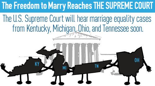 On behalf of Jim and the other petitioners in the Ohio marriage cases – Obergefell v. Hodges and Henry v. Hodges – as well as the petitioners in the Kentucky marriage cases – Bourke v. Beshear and Love v. Beshear, – we today filed two briefs at the Supreme Court arguing for the freedom to marry. In addition, there are other couples at the Supreme Court from Michigan and Tennessee fighting for a right already recognized by 37 other states.