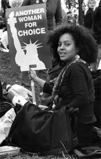 Woman at rally in support of reproductive freedom. (c. 1980)